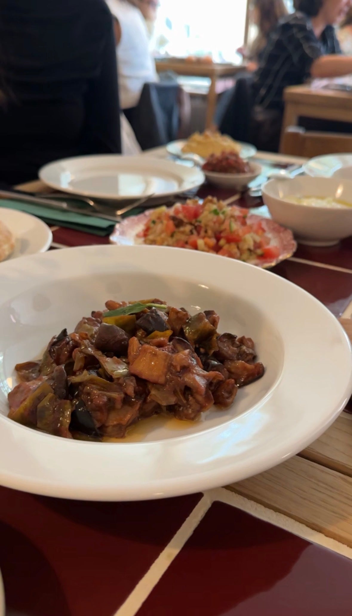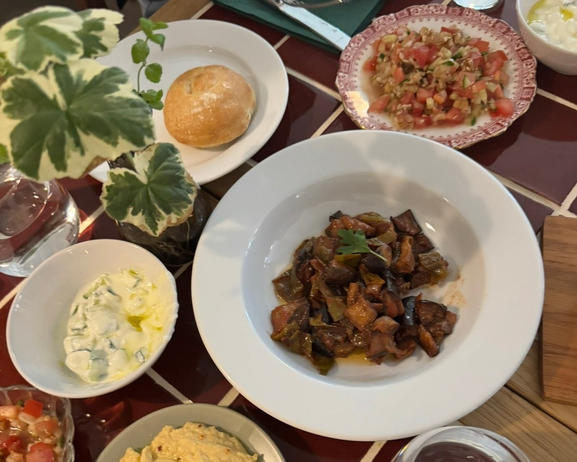 Şakşuka: Sautéed vegetables drizzled in a rich, savory tomato sauce.